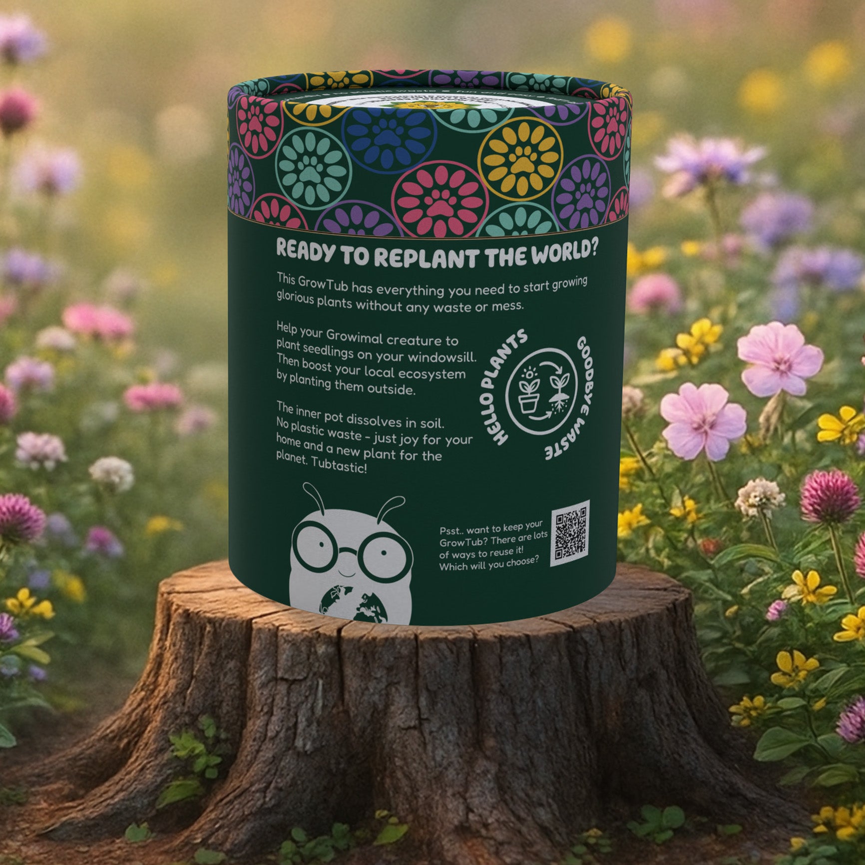 GrowTubs are character-themed growing kits designed to be fun, mess-free and completely zero-waste. Every component is reusable, recyclable or home-compostable, so once your plants are grown there’s nothing harmful left behind — no plastic pots, no rubbish, no plastic waste.